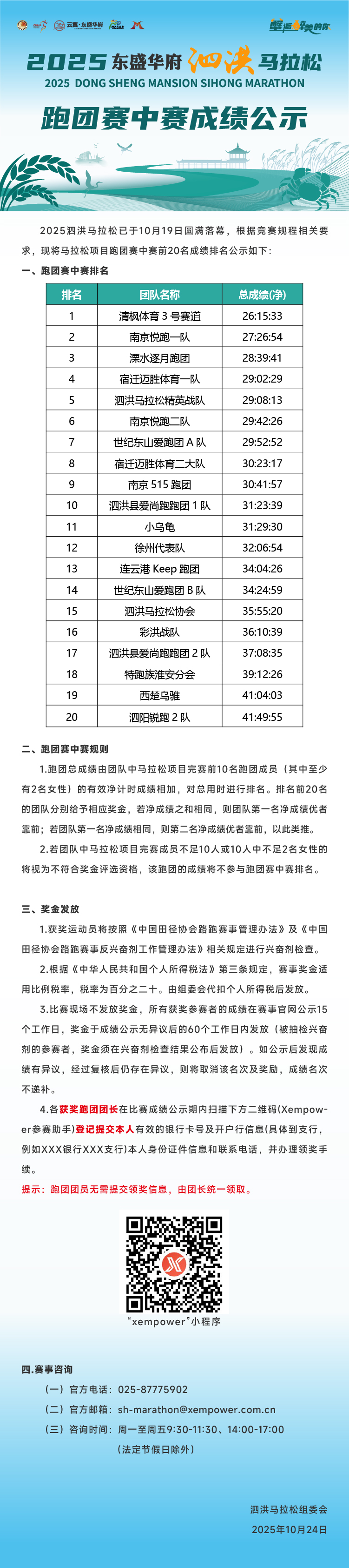 2025东盛华府泗洪马拉松跑团赛中赛成绩公示